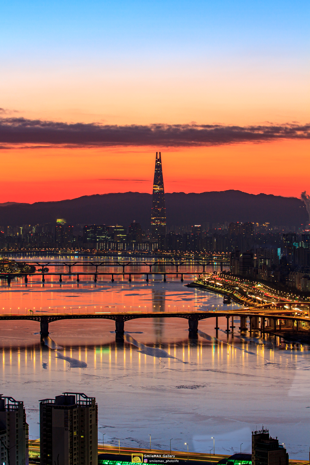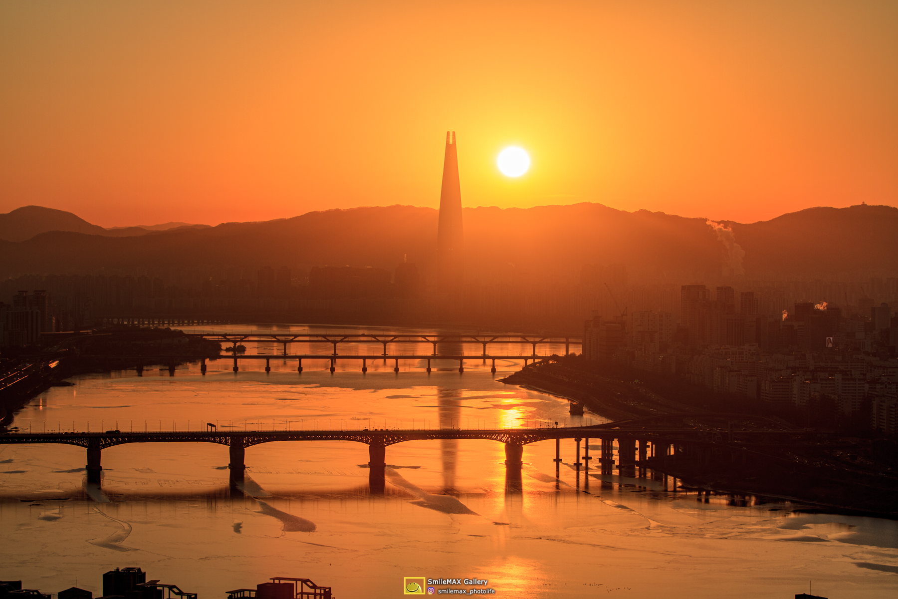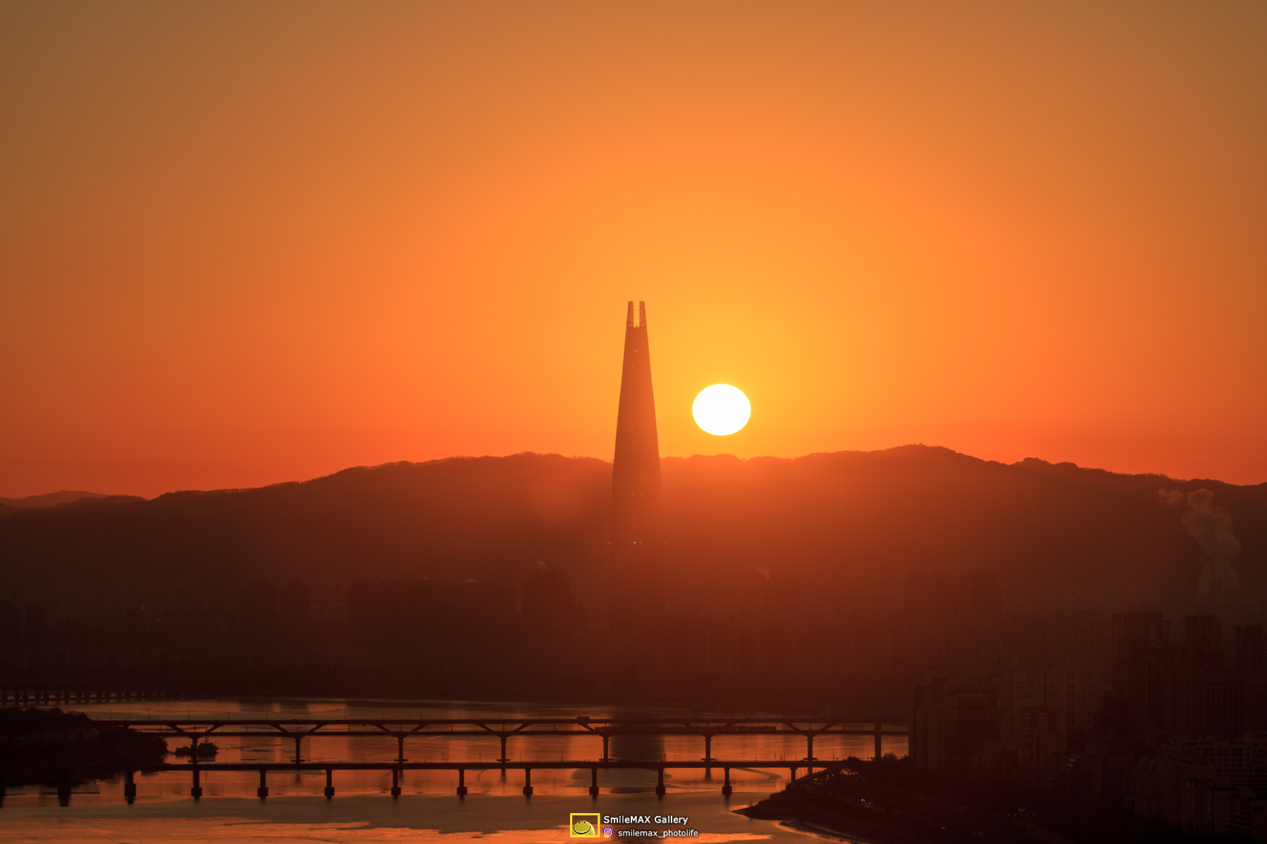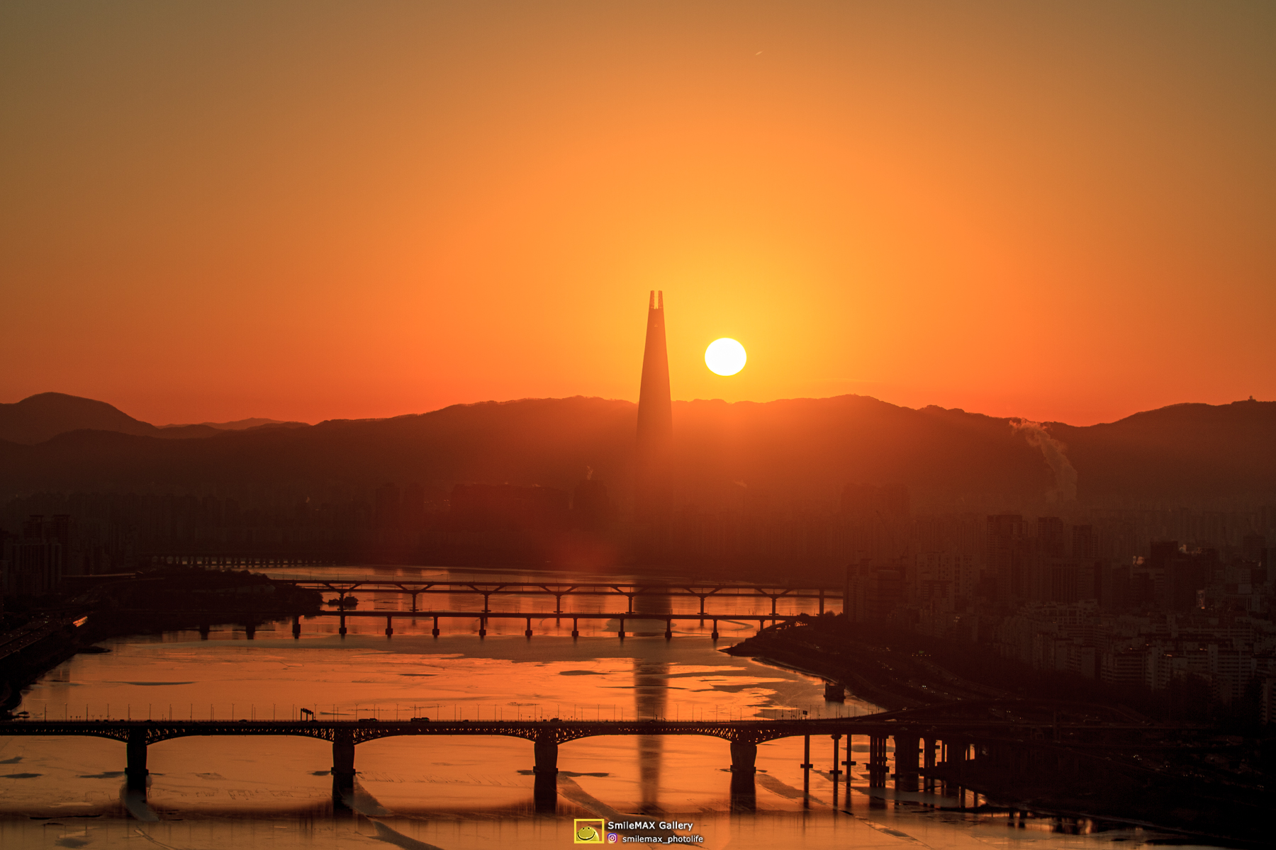 얄밉게도.. 롯데타워 우측에 고개를 내민.. 태양~