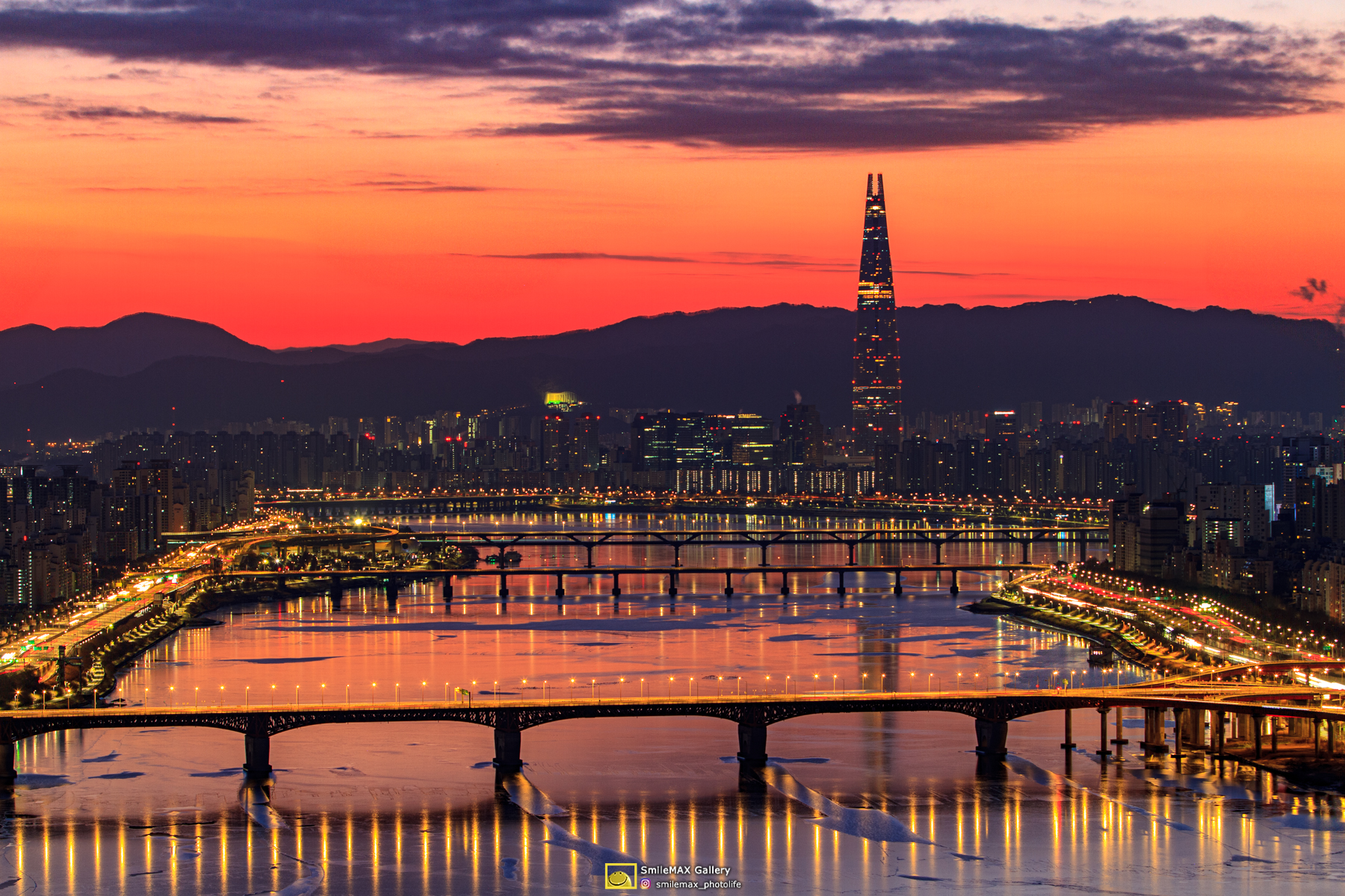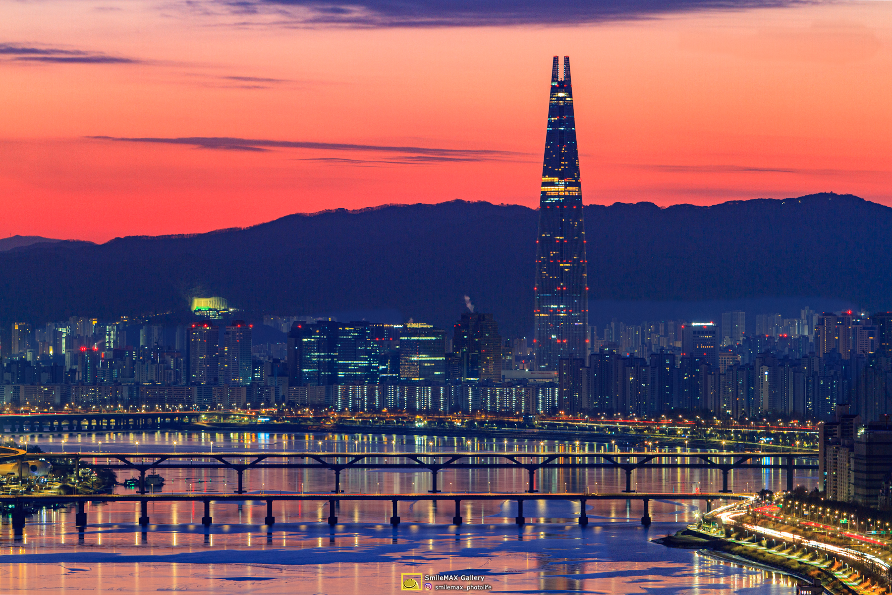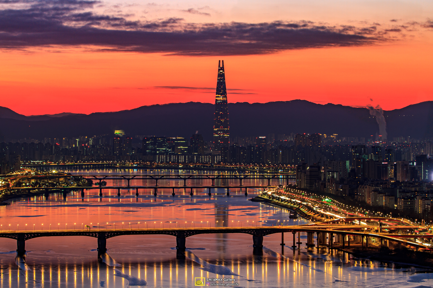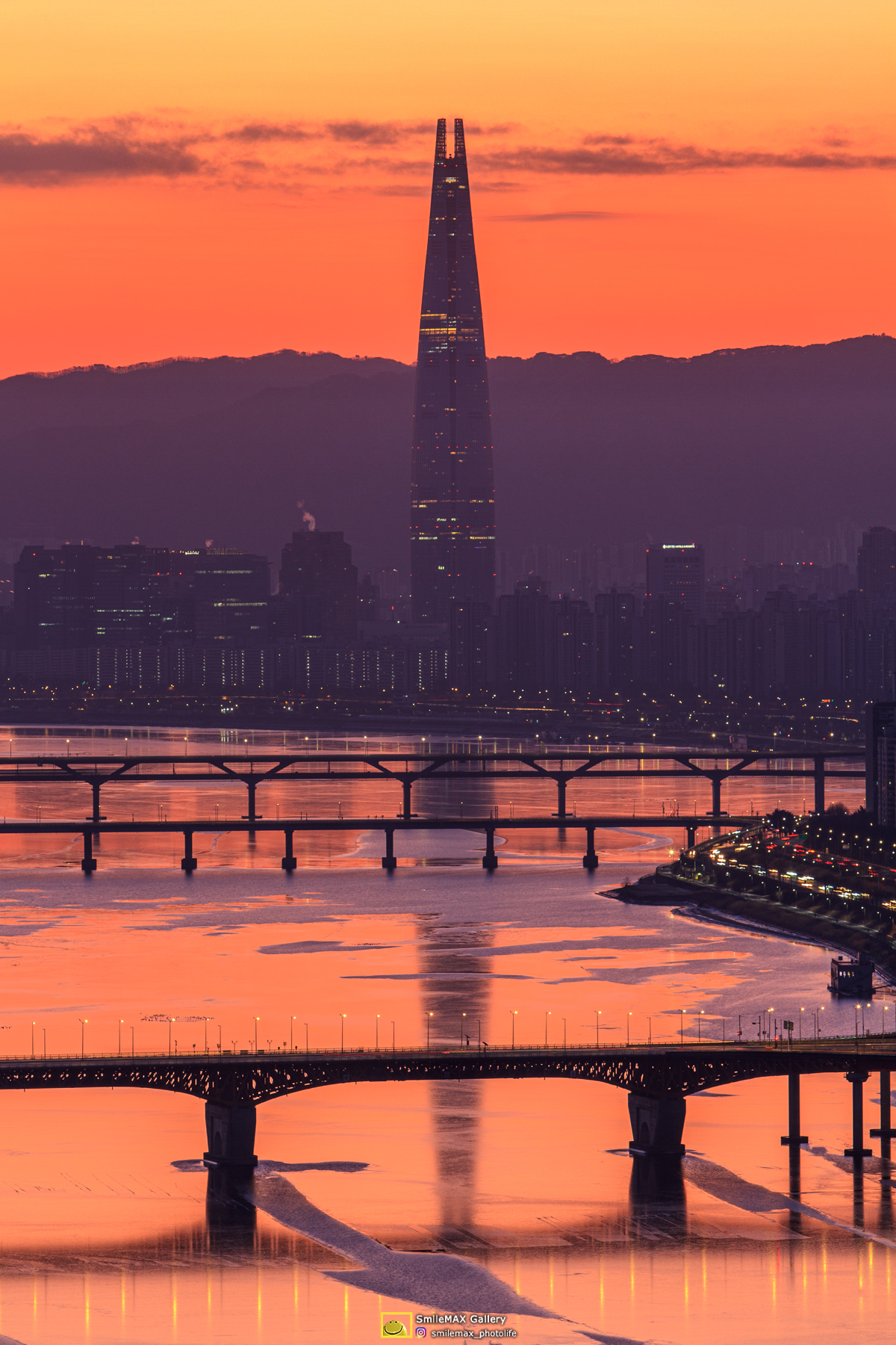 얄밉게도.. 롯데타워 우측에 고개를 내민.. 태양~