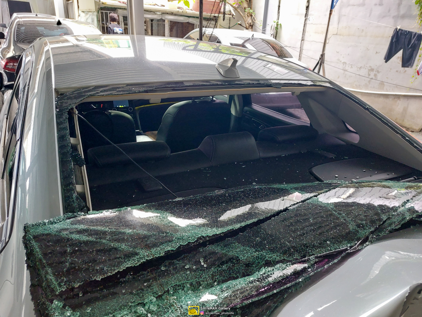 파손된 차량의 모습입니다.